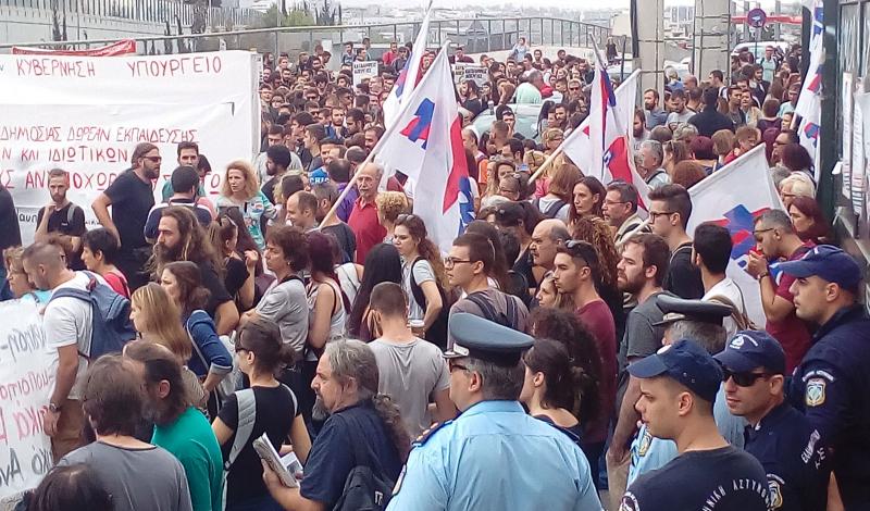Μαχητική συγκέντρωση στο υπουργείο Παιδείας για τα προβλήματα των σχολείων